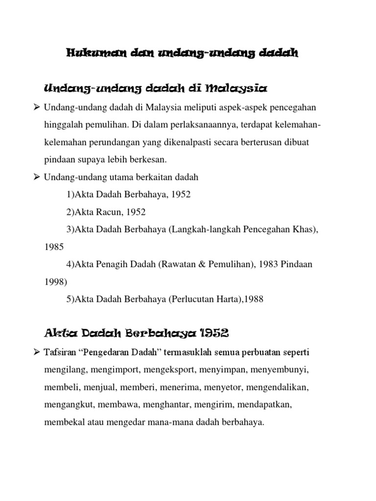 Undang Undang Dadah Malaysia Akta Dadah Berbahaya 1952