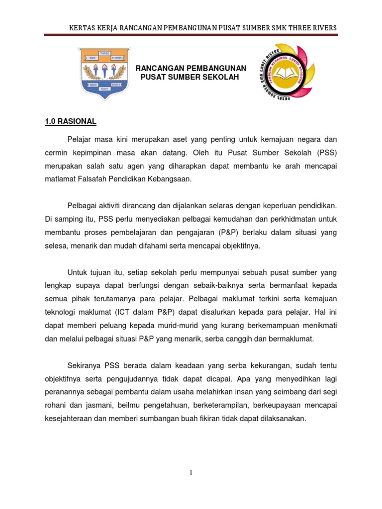 Kertas Kerja Pembangunan Pusat Sumber 1 Pdf