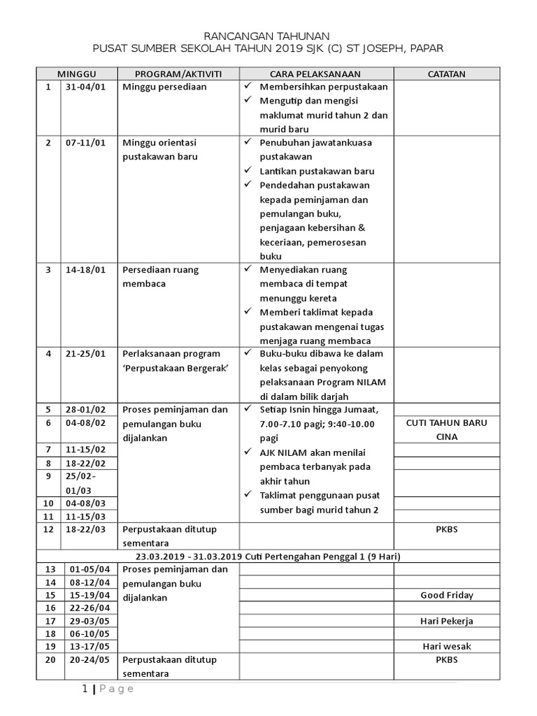 Doc Aktiviti Tahunan Pusat Sumber Sekolah Ita Mergie Academia Edu
