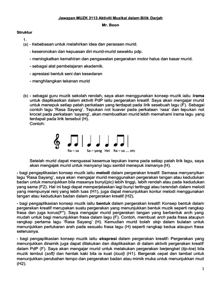 Jawapan Muzk 3113 Aktiviti Muzikal Dalam Bilik Darjah