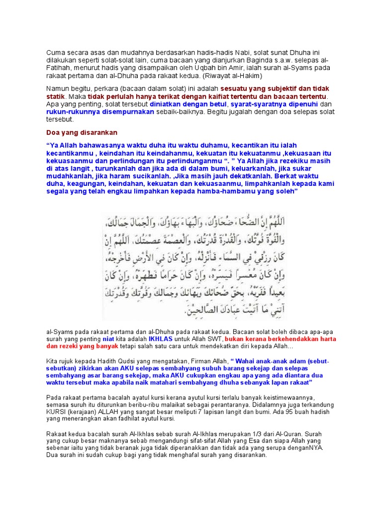 Solat Sunat Dhuha Kepada Orang Yang Tidak Menghafal Surah Surah Yang Disarankan Iaitu
