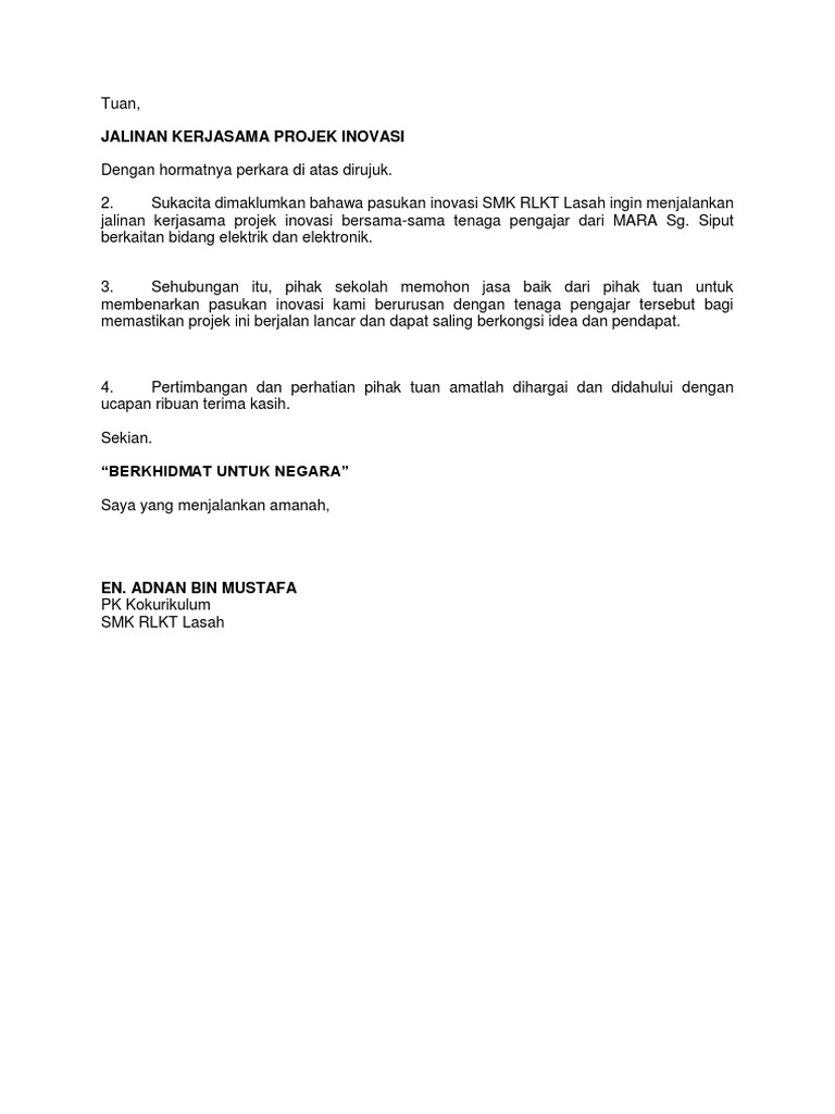 Jalinan Kerjasama In English