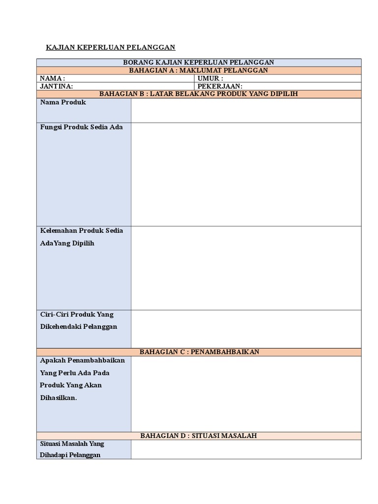 Borang Kajian Keperluan Pelanggan Docx Borang Kajian Keperluan Pelanggan Bahagian A Maklumat Pelanggan Nama Jantina Lelaki Perempuan Umur No Course Hero