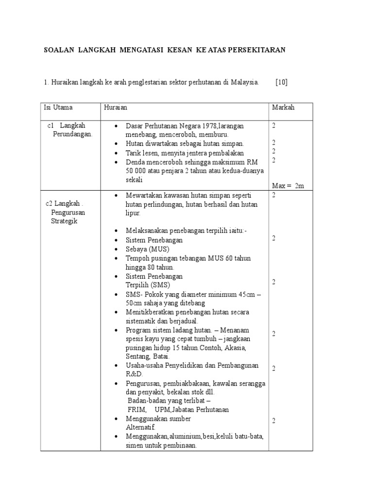 Soalan Langkah Mengatasi Kesan Ke Atas Persekitaran