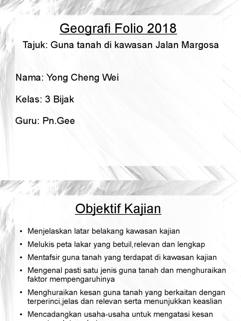 Geografi Folio 2018 Tajuk Guna Tanah Di Kawasan Jalan Margosa Nama Yong Cheng Wei Kelas 3 Bijak Guru Pn Gee