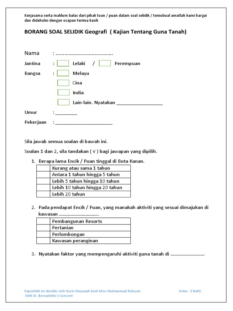 Borang Soal Selidik Tebus Guna Tanah 1 Geografi