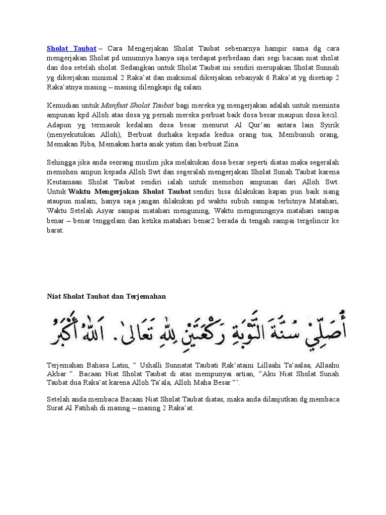 Bacaan Niat Sholat Taubat Docx