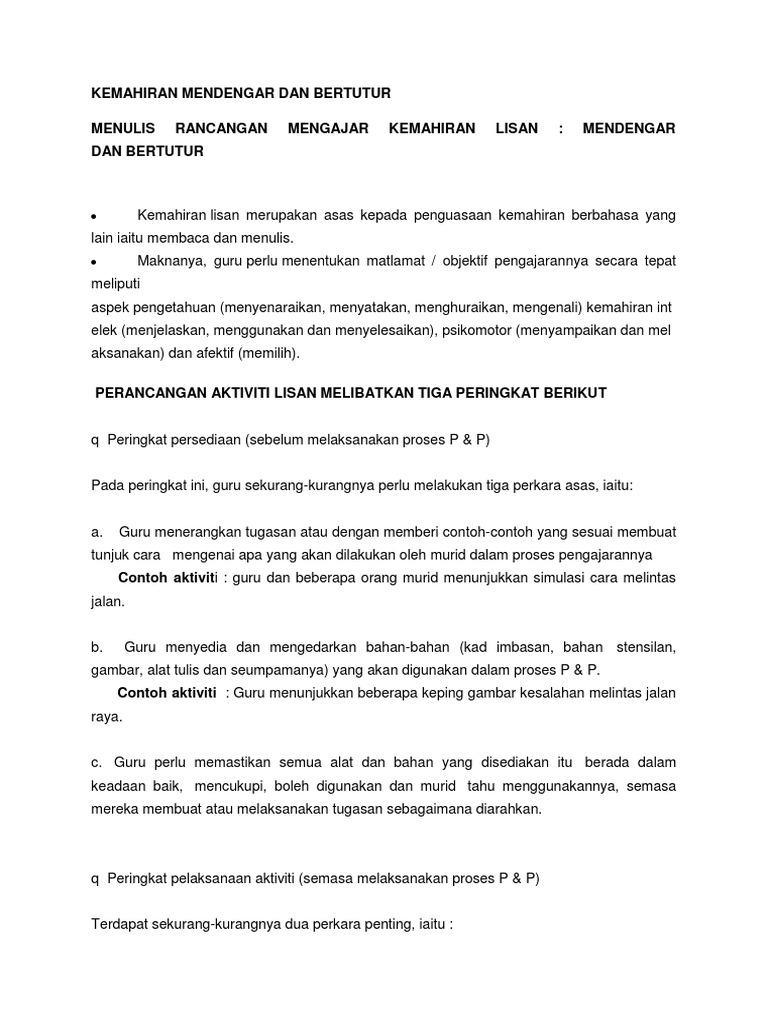 Bmm 3104 Pengajaran Kemahiran Bahasa Melayu Kemahiran Mendengar Dan Bertutur