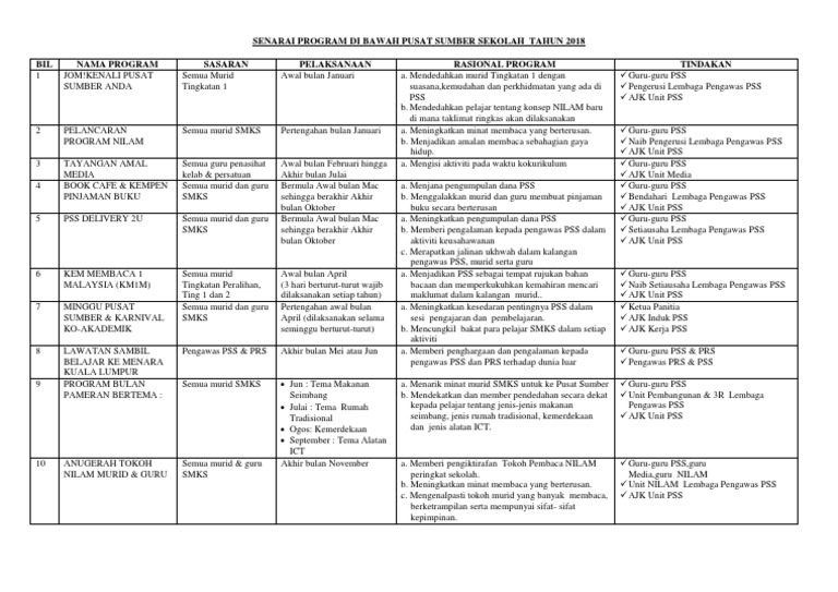 Senarai Program Di Bawah Pusat Sumber Sekolah Tahun 2018