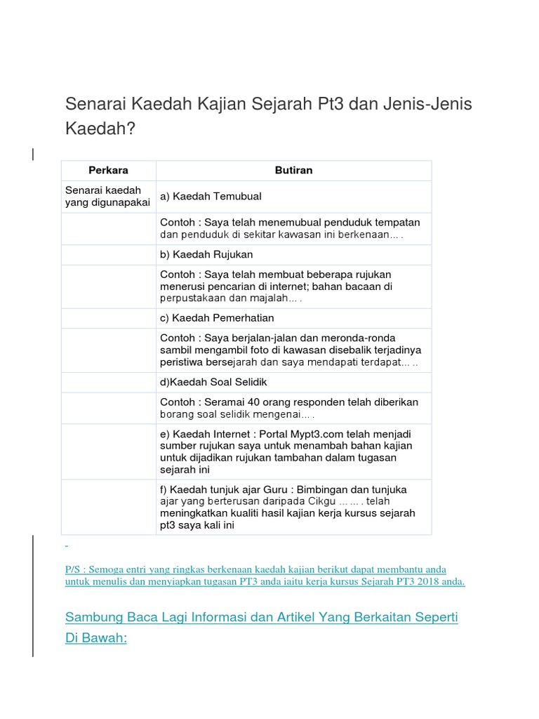 Senarai Kaedah Kajian Sejarah Pt3 Dan Jenis