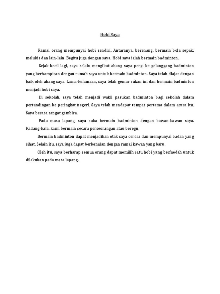 Contoh Karangan Hobi Saya Bermain Badminton Barisan Contoh