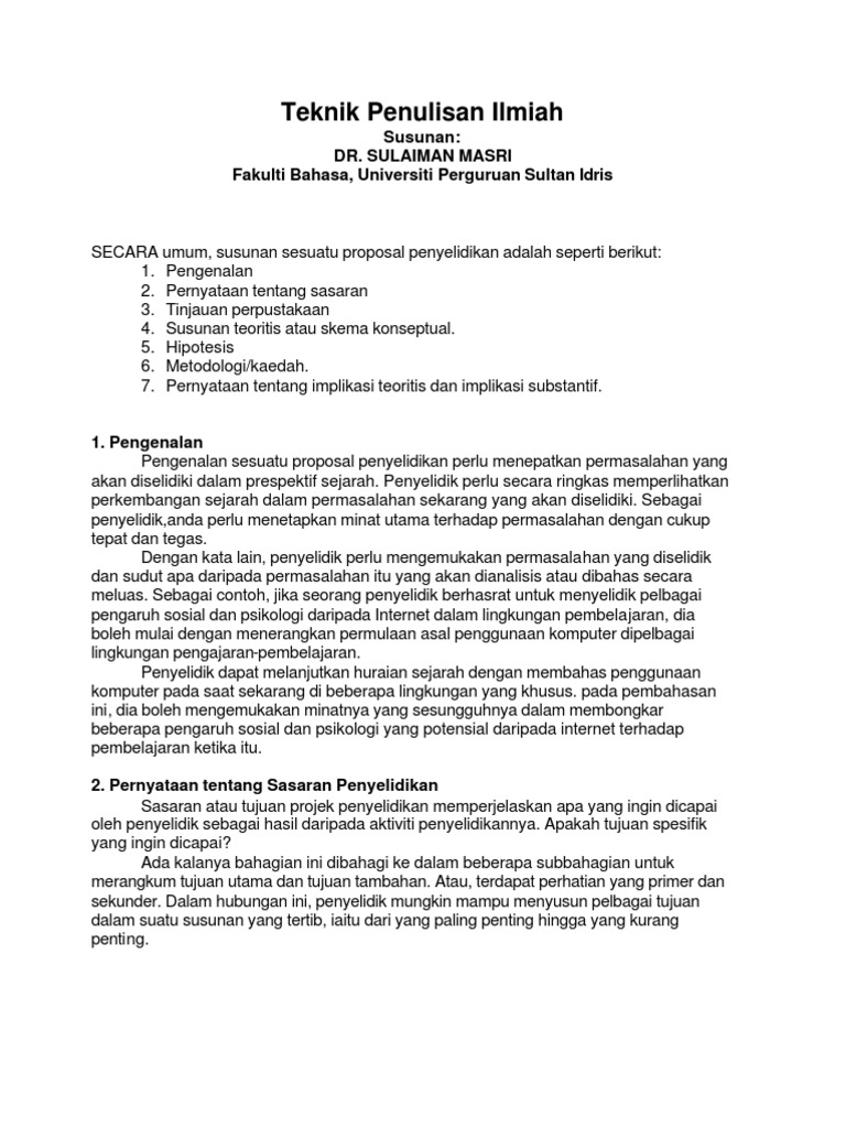 Teknik Penulisan Ilmiah Susunan Dr Sulaiman Masri Fakulti Bahasa Universiti Perguruan Sultan Idris