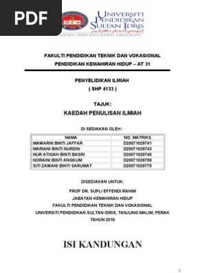 Penulisan Ilmiah Muka Depan 1 2 Pdf Universiti Pendidikan Sultan Idris Fakulti Fakulti Pembangunan Manusia Tajuk Tugasan Penulisan Ilmiah Kesalahan Course Hero