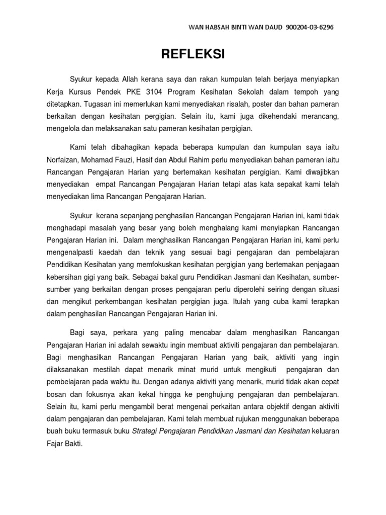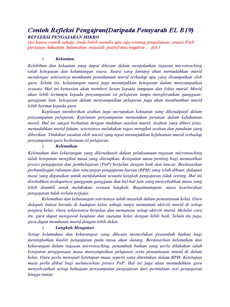 Pdf 25 Contoh Penulisan Refleksi Selepas Sesi P P Hootoh Tudia Academia Edu
