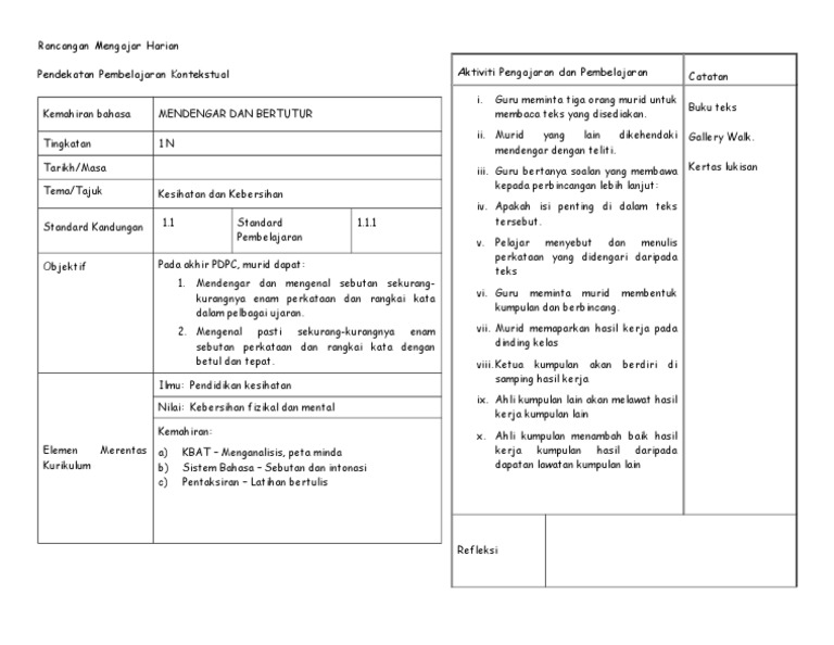 Contoh Rph Kemahiran Mendengar Dan Bertutur