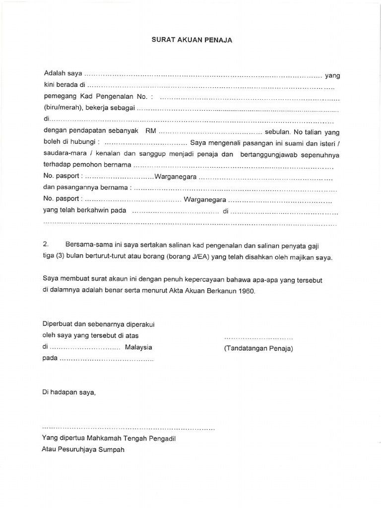 Contoh Surat Akuan Sumpah Pasangan Tidak Bekerja Backup Gambar