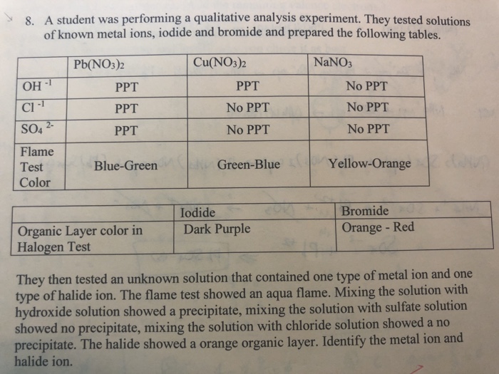 Solved 8 A Student Was Performing A Qualitative Analysis Chegg Com