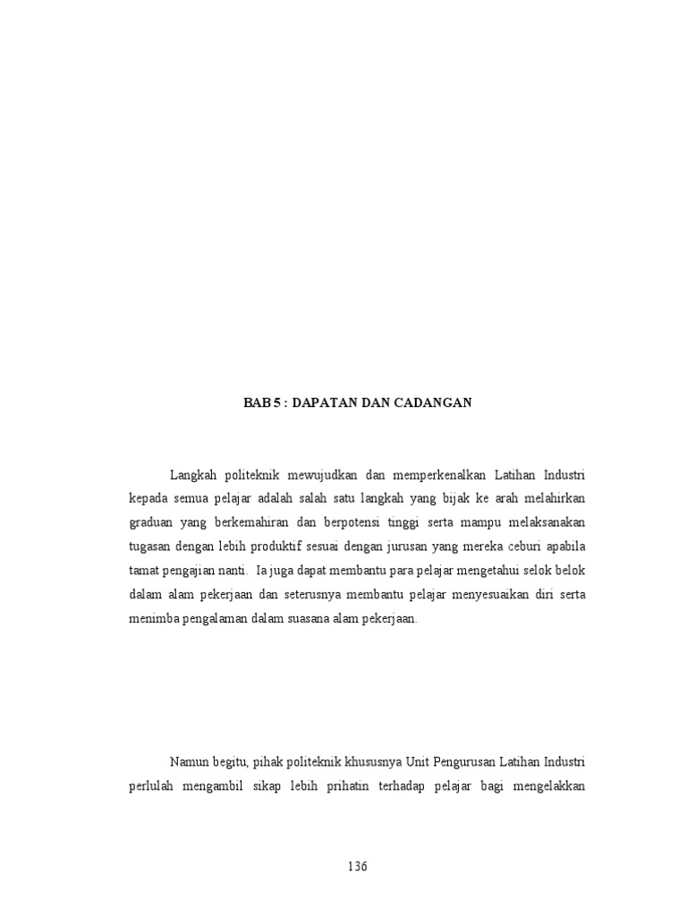 Bab 5 Docx Bab 5 Dapatan Dan Cadangan 5 1 Pengenalan Latihan Industri Amat Penting Kepada Pelajar Sebagai Pelengkap Kepada Penganugerahan Diploma Course Hero
