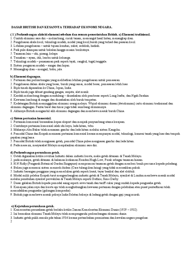 Dasar British Terhadap Ekonomi Negara Dan Kesannya Kertas 3