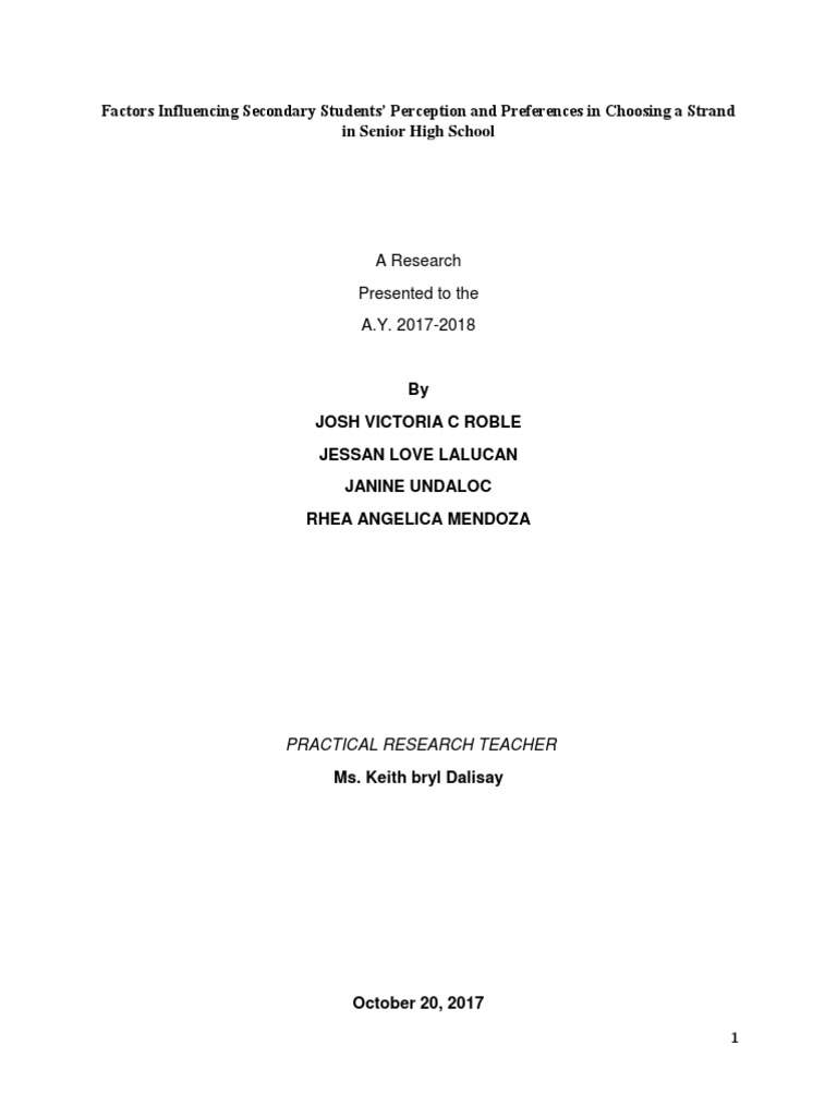 Doc Basis Of Grade 12 Students On Choosing The Academic Strand Stem A Research Proposal Presented To Bauan Technical High School In Partial Fulfillment Of The Requirements For The K 12 Enhanced Basic