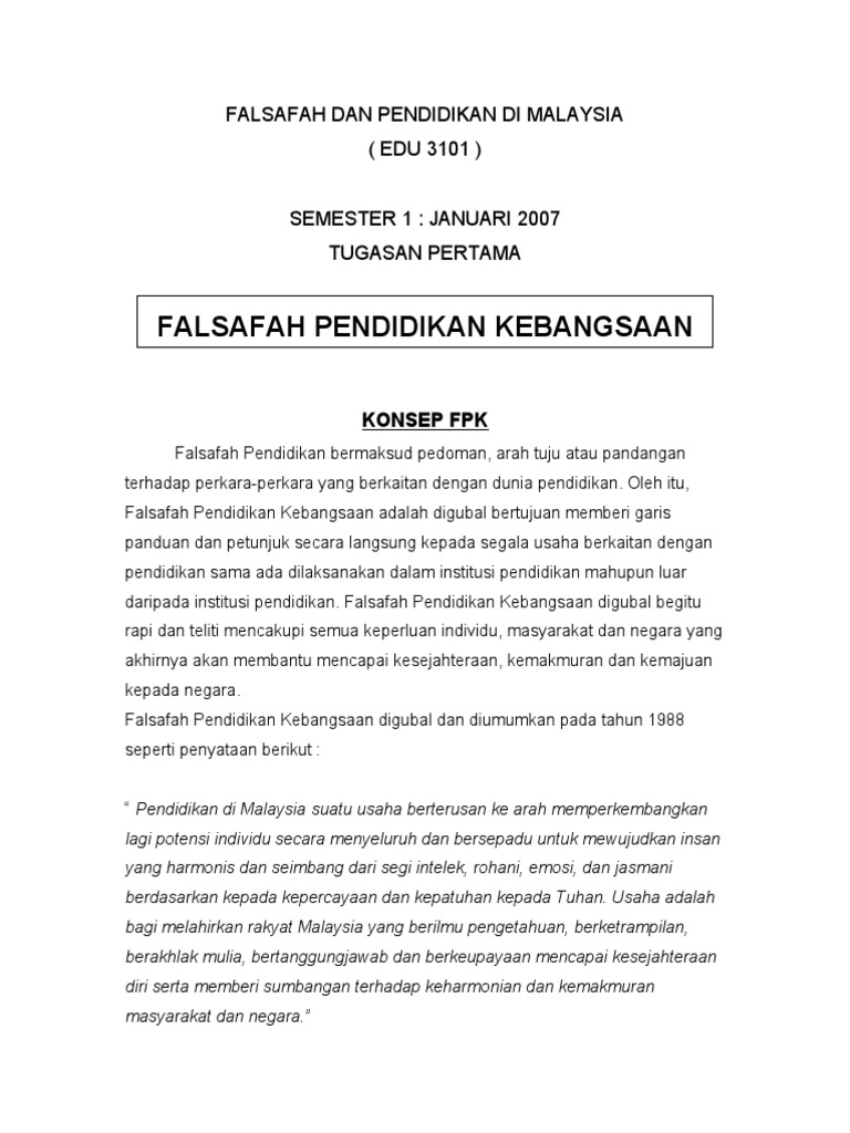 Pdf Falsafah Dasar Pendidikan Dimalaysia Nurul Nadhirah Academia Edu