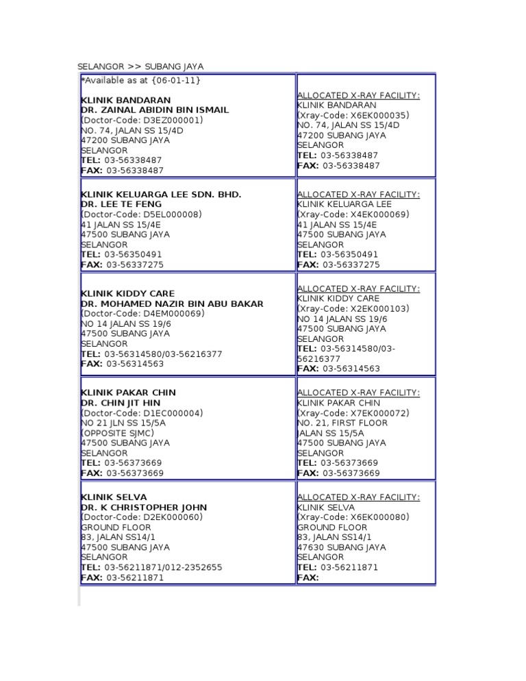 List Of Clinics Fomema In Selangor Mwl1oxk165nj