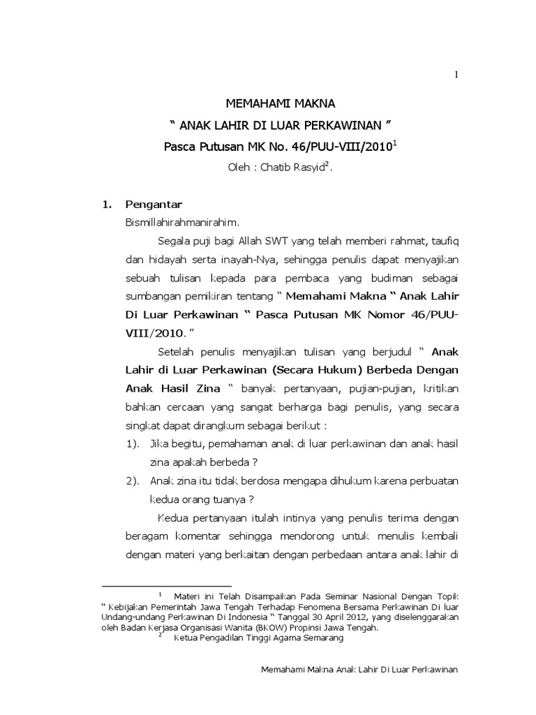 Status Anak Diluar Nikah Menurut Islam Dan Hukum Perdata Indonesia