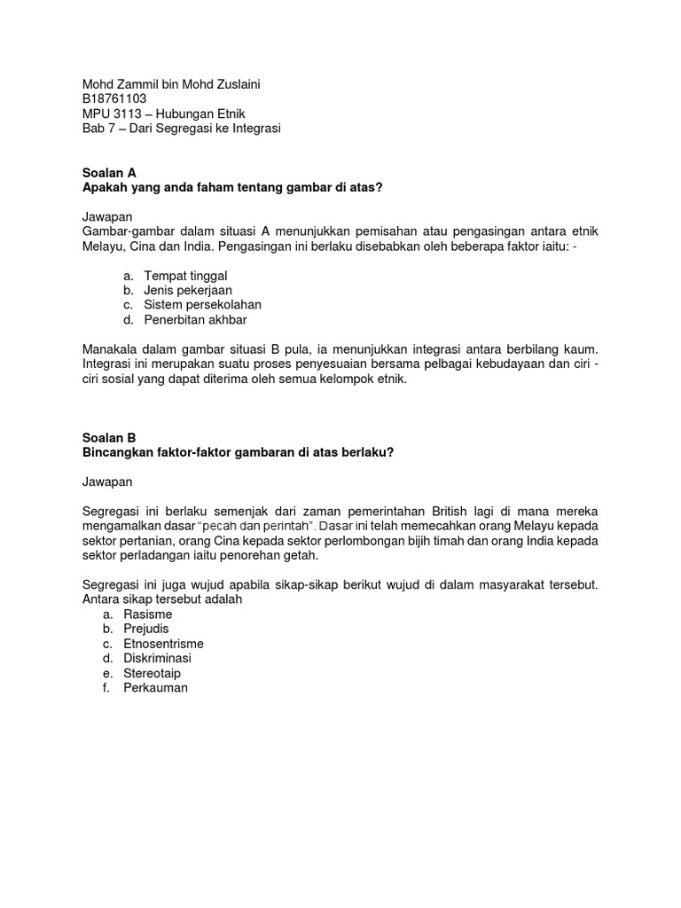 Bab 7 Ppt Bab 7 Hubungan Etnik Dari Segregasi Ke Integresi Objektif Memahami Konsep Segrigasi Dan Integrasi Dalam Hubungan Etnik Di Malaysia Menilai
