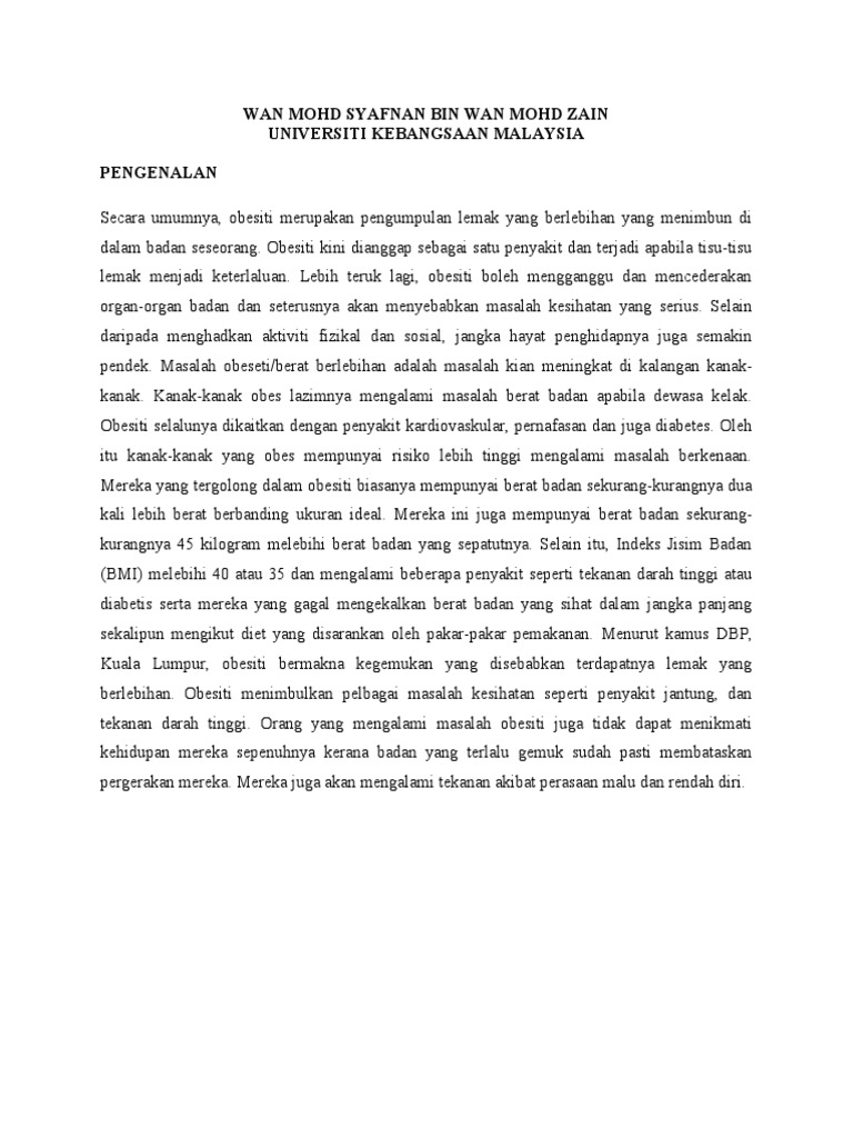 Doc Tajuk Masalah Obesiti Dalam Kalangan Kanak Kanak Di Malaysia Rasul Salleh Academia Edu