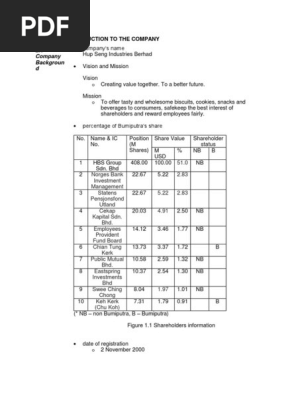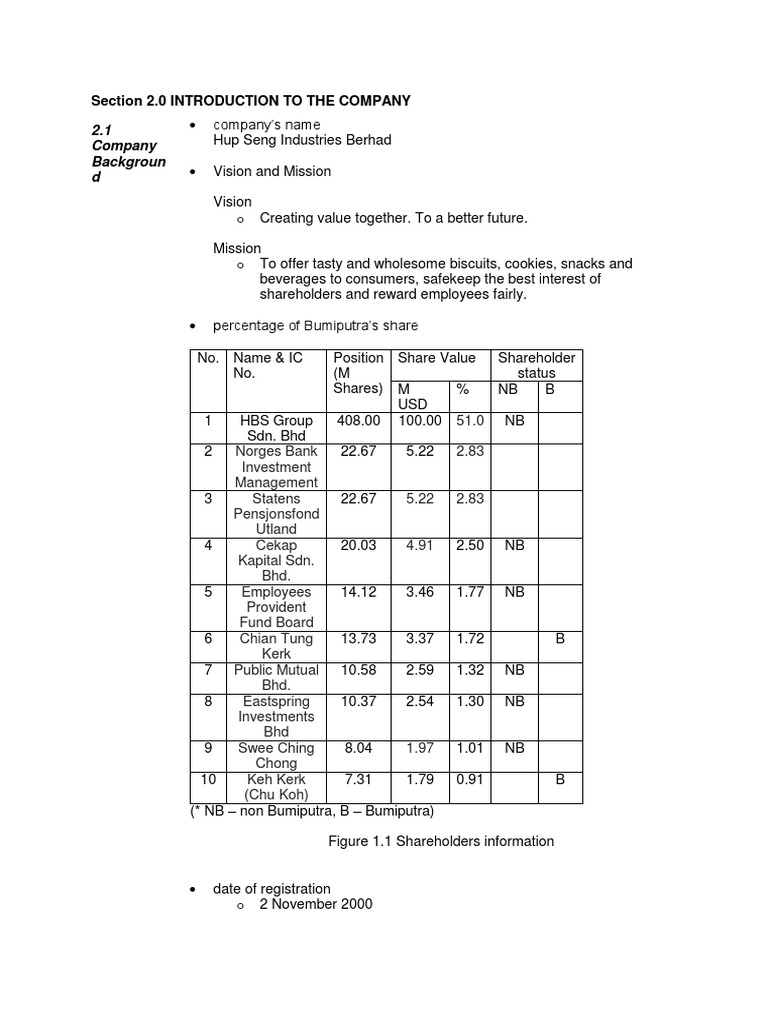 Full Report Hup Seng 1 0 Background Of The Company Hup Seng Industries Berhad Hsib S Mission Is To Produce Quality Fast Moving Consumer Products And Course Hero
