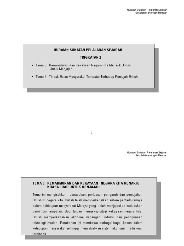Sukatan Pelajaran Sejarah Tingkatan 4 Sumber Pendidikan