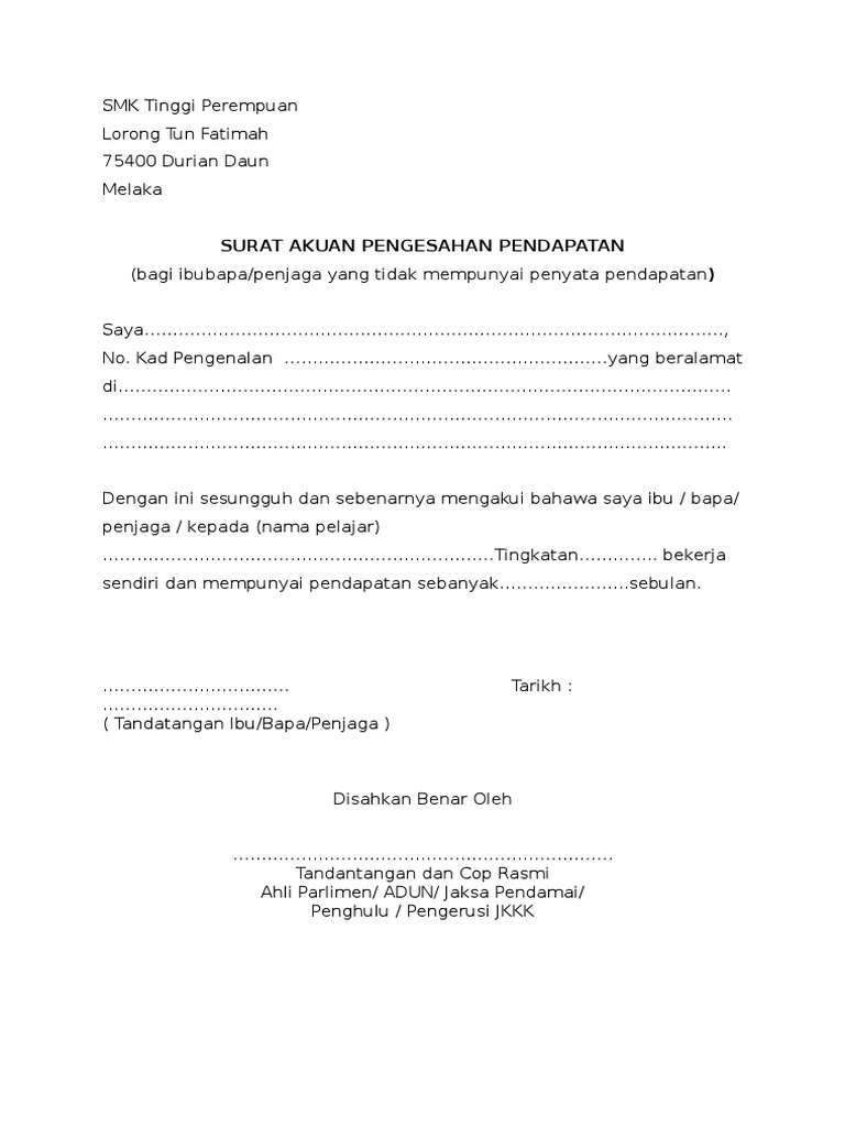 Terkini Surat Pengesahan Pendapatan Ibu Bapa 1