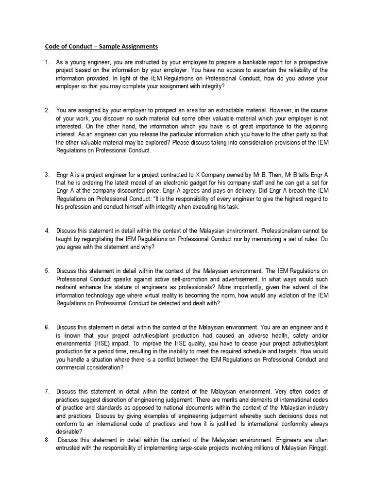 Option 2 Code Of Conduct Sample Assignments Engineer Employment