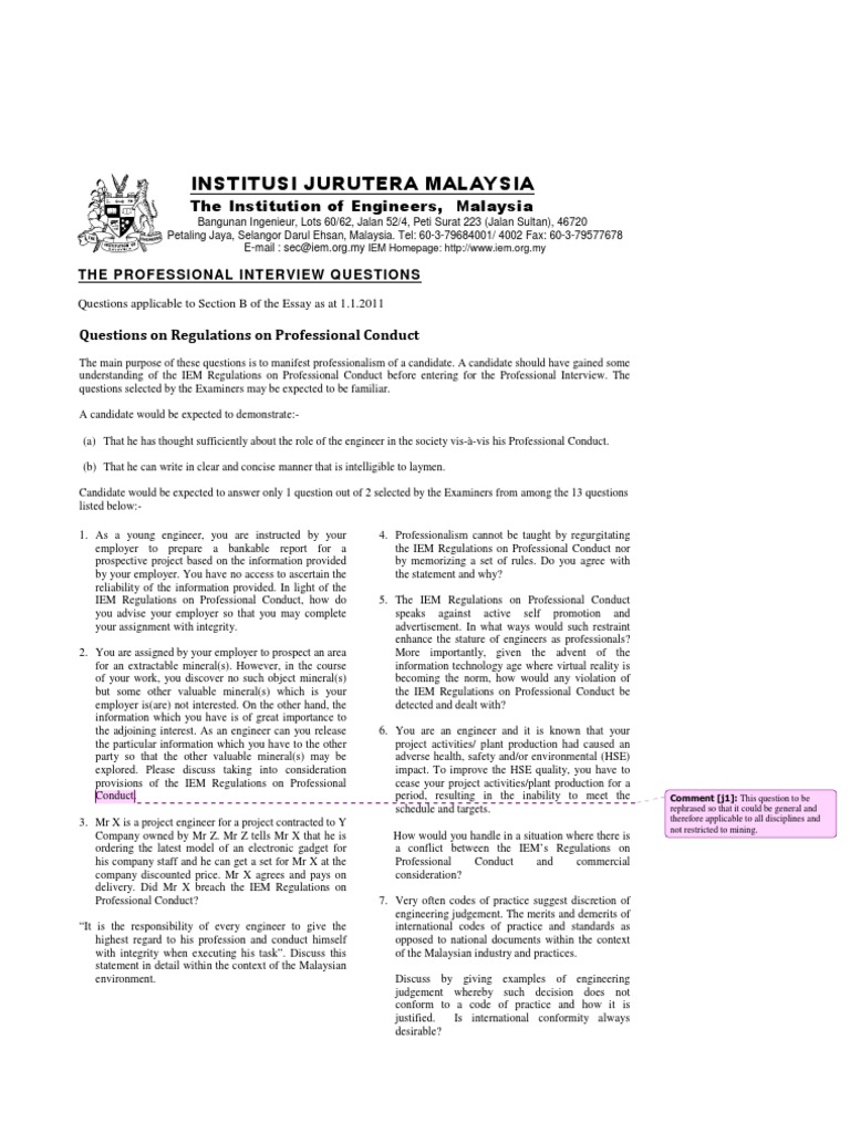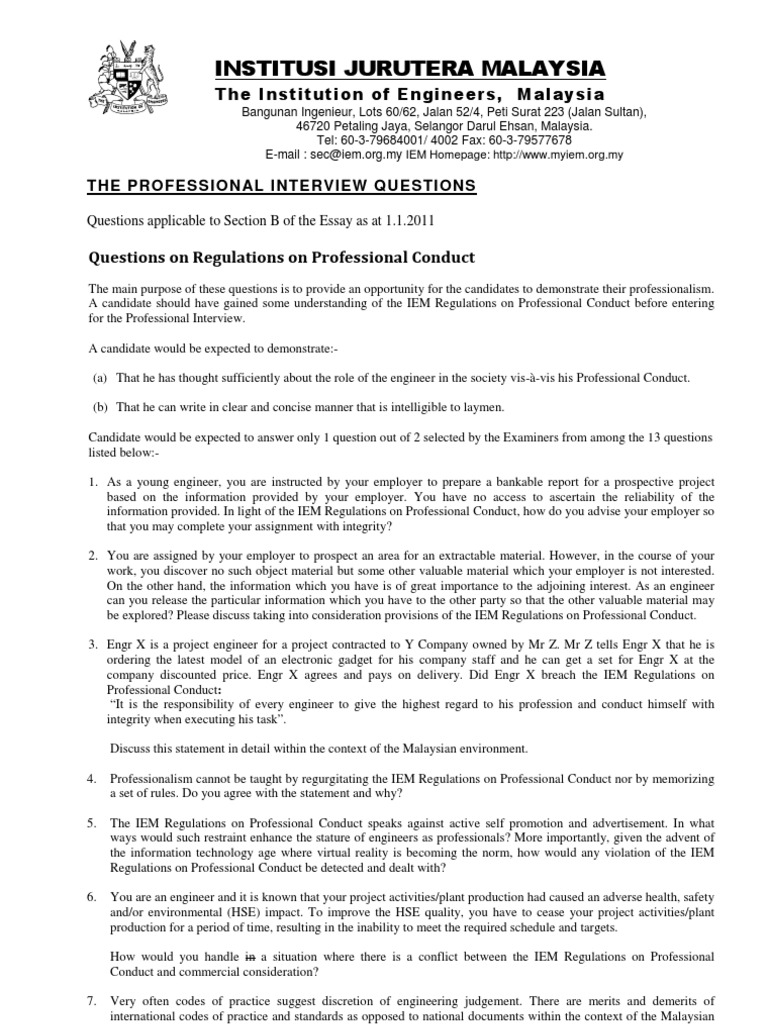 Route To Professional Engineer Ir Peng Iem Professional Interview Questions Essay Part B