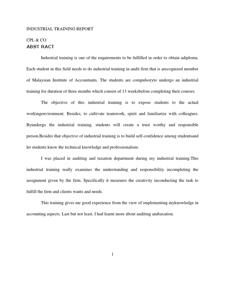 Industrial Training Report Business Accounting And Audit