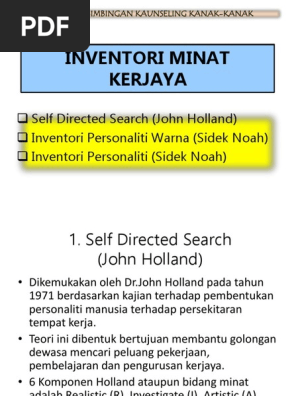Inventori Minat Kerjaya Soal Selidik Minat Kerjaya Self Directed Search John L Holland Ph D Alih Bahasa Oleh Sidek Mohd Noah Ph D Bahagian A Kesukaan Course Hero