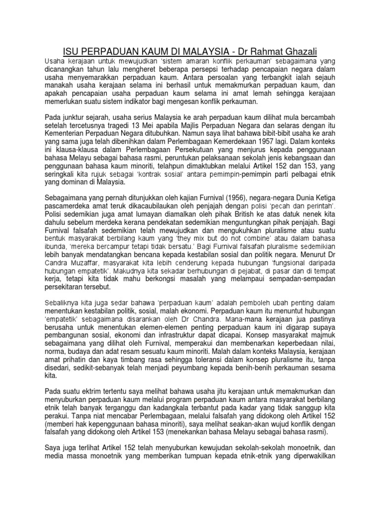 Doc Isu Perpaduan Kaum Di Malaysia Sufi Ryder Academia Edu