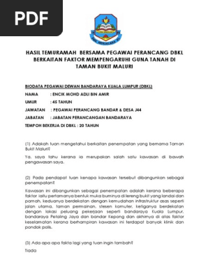 Hasil Temuramah Bersama Pegawai Perancang Dbkl Berkaitan Faktor Mempengaruhi Guna Tanah Di Taman Bukit Maluri