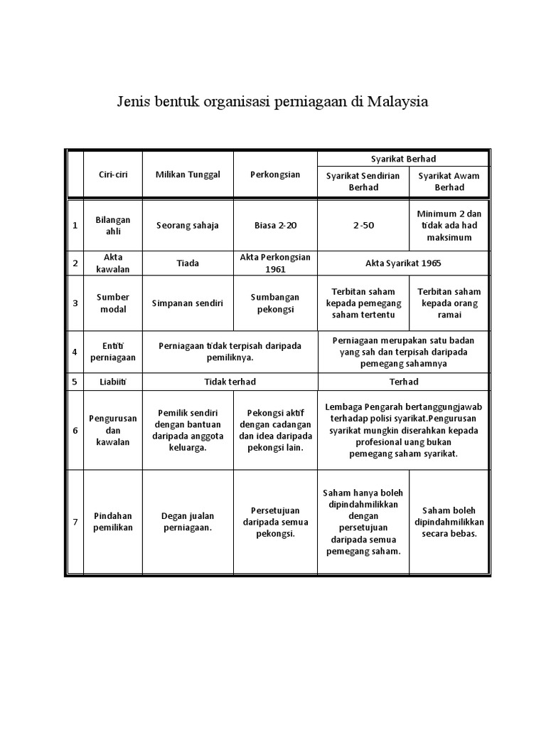 Perbandingan Bentuk Perniagaan Di Malaysia Company Secretary In Malaysia