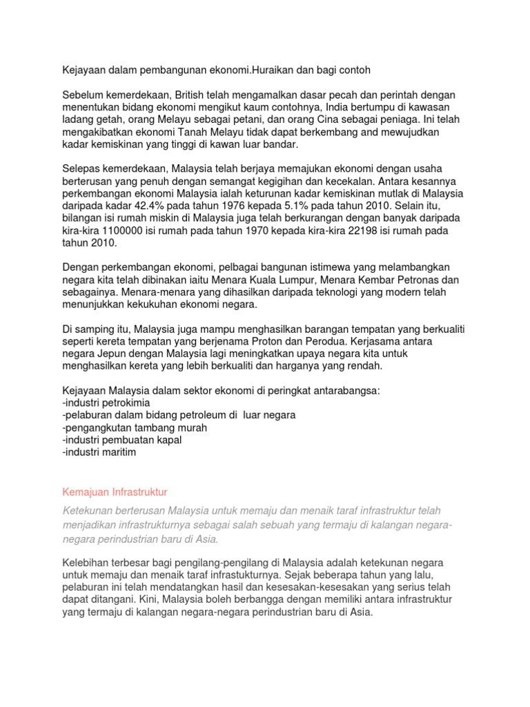 Kejayaan Malaysia Dalam Bidang Ekonomi Sejarah Kertas 3