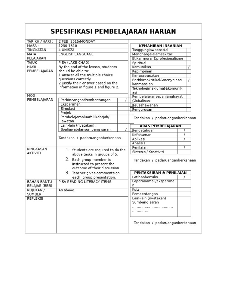 Spesifikasi Pembelajaran Harian Kemahiran Insaniah