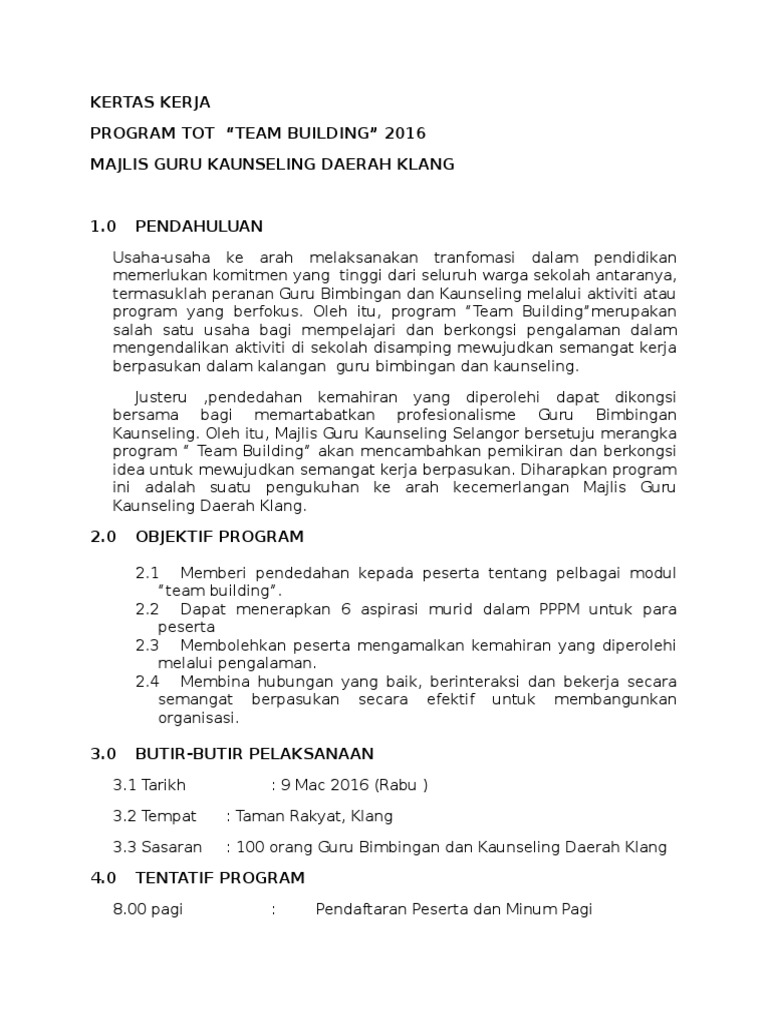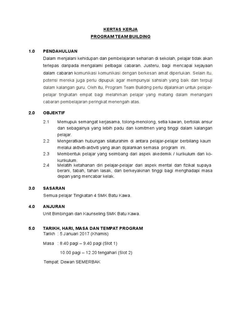 Doc Kertas Kerja Team Building Smk Tun Hussein Onn Norlida Mohd Mahudin Academia Edu