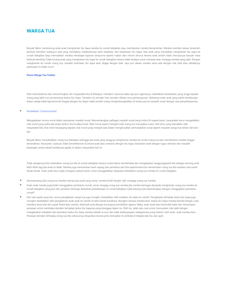 Punca Pengabaian Warga Tua