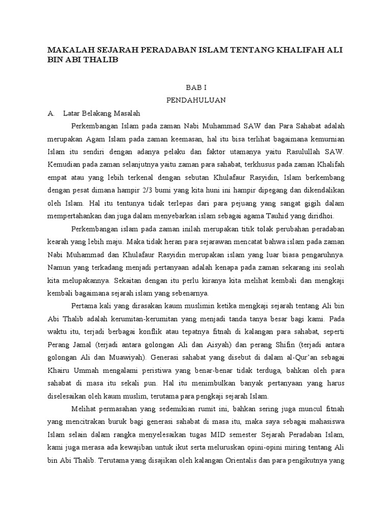 Makalah Sejarah Peradaban Islam Tentang Khalifah Ali Bin Abi Thalib