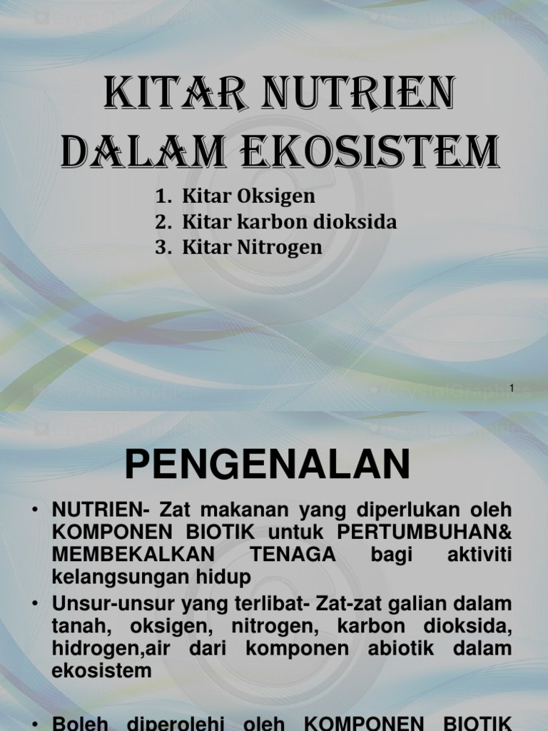 Kitar nutrien dalam ekosistem. Nutrien ialah segala unsur yang diperlukan untuk proses fotosintesis iaitu terdiri daripada air zat galian gas gas oksigen karbon dioksida nitrogen dan hidrogen. A apakah dimaksudkan dengan kitar nutrien. Nutrien nutrien ini diperlukan dengan banyak. Asmawi bin abdullah smk purun 28330 triang pahang.