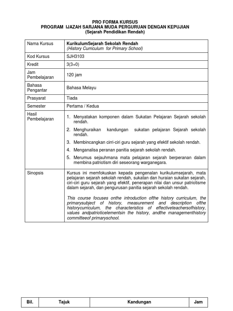 Doc Proforma Sjh1024 Perkembangan Mata Pelajaran Sejarah Dalam Pendidikan Nuna Wawa Academia Edu