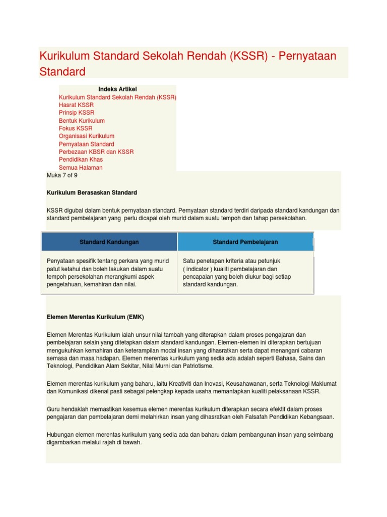 Kurikulum Standard Sekolah Rendah In English Red Pastel D