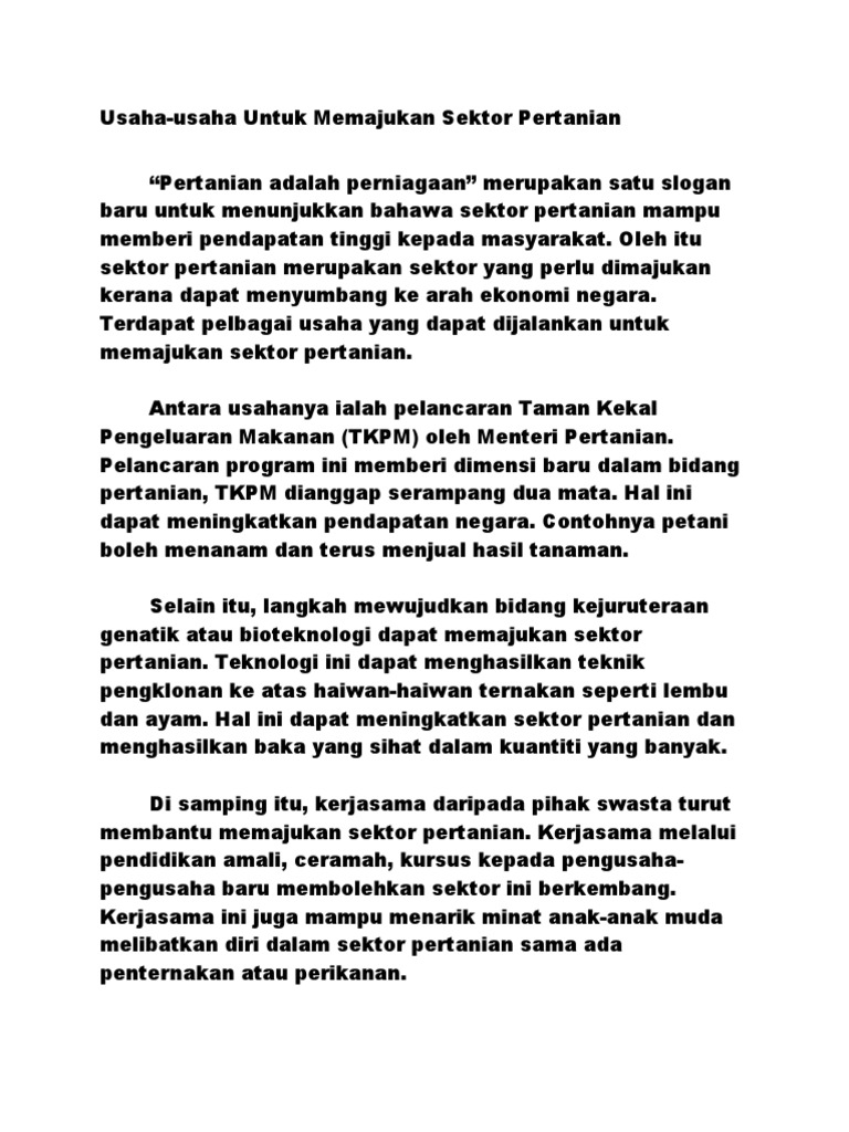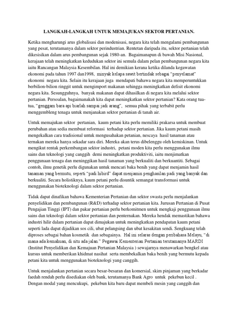 Langkah Langkah Untuk Memajukan Sektor Pertanian Di Negara Kita