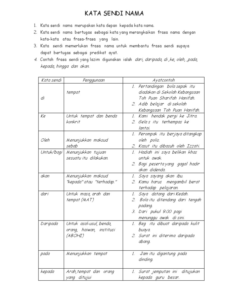 Kata Kata Sendi Nama Tahun 3 Sjkc