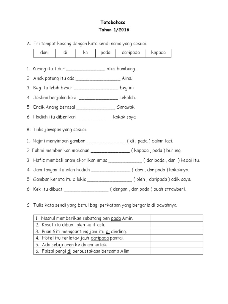 Latihan Tatabahasa Latihan Kata Sendi Nama Tahun 2